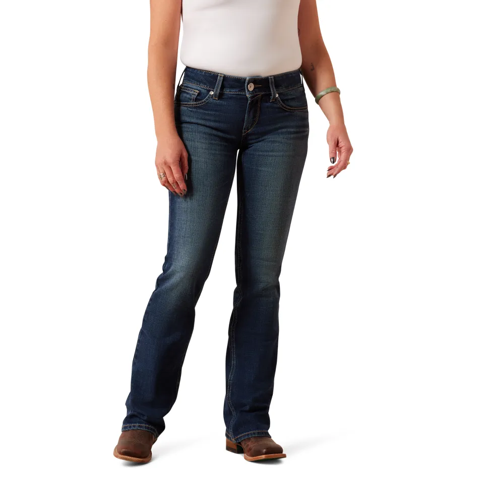 Die Ariat Damen-Reithose Fiona Midrise Bootcut vereint stilvollen Komfort mit funktionalem Design. Der klassische Schnitt passt perfekt in den Alltag und auf den Pferderücken – egal, ob beim Reiten oder in der Freizeit. Das zeitlose Design, ergänzt durch Kontrastnähte auf den Gesäßtaschen, macht diese Jeans zu deinem liebsten Begleiter. Der Midrise-Schnitt sitzt bequem über den Hüften, während der Bootcut-Beinabschluss ideal über Stiefel fällt und eine elegante Silhouette schafft. Dezente Hand-Sanding-Details verleihen der Jeans einen authentischen, leicht getragenen Look. Dank des elastischen Materials bietet die Jeans Bewegungsfreiheit und Komfort, während der klassische Reißverschluss mit Knopfverschluss für eine sichere Passform sorgt. Diese Jeans ist die perfekte Wahl für Frauen, die Wert auf Stil und Komfort legen.