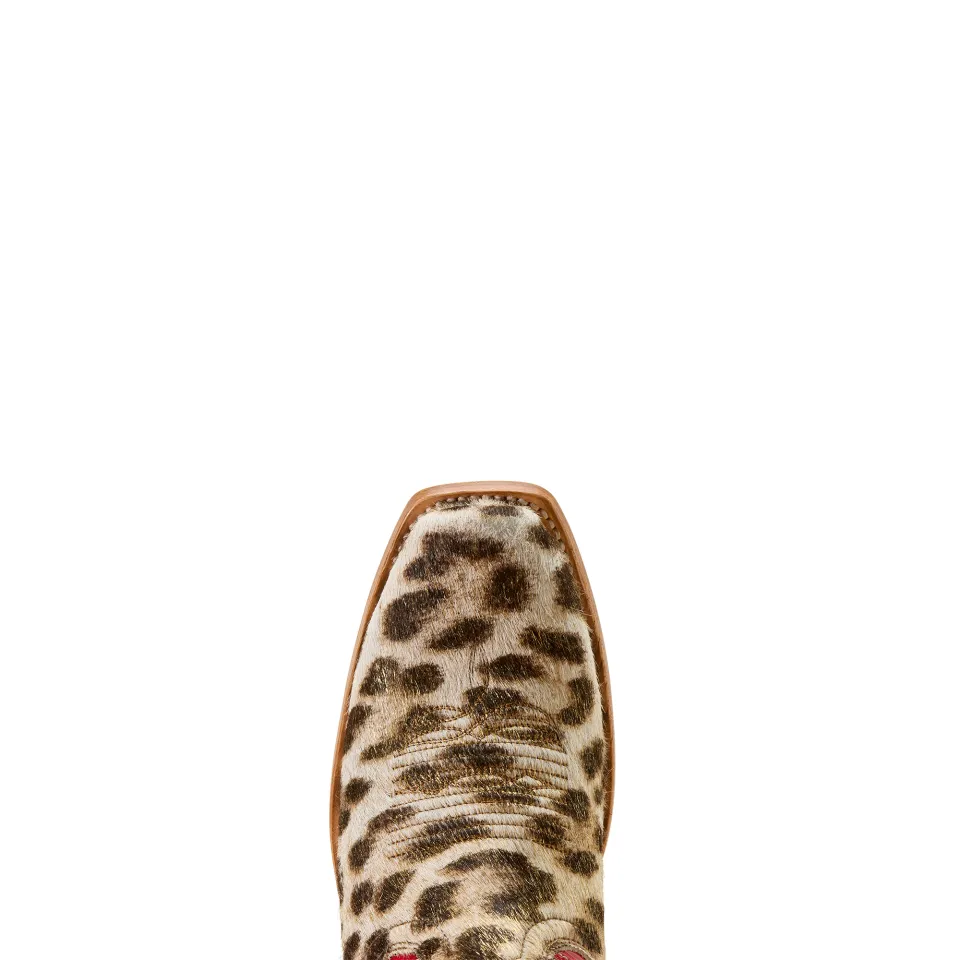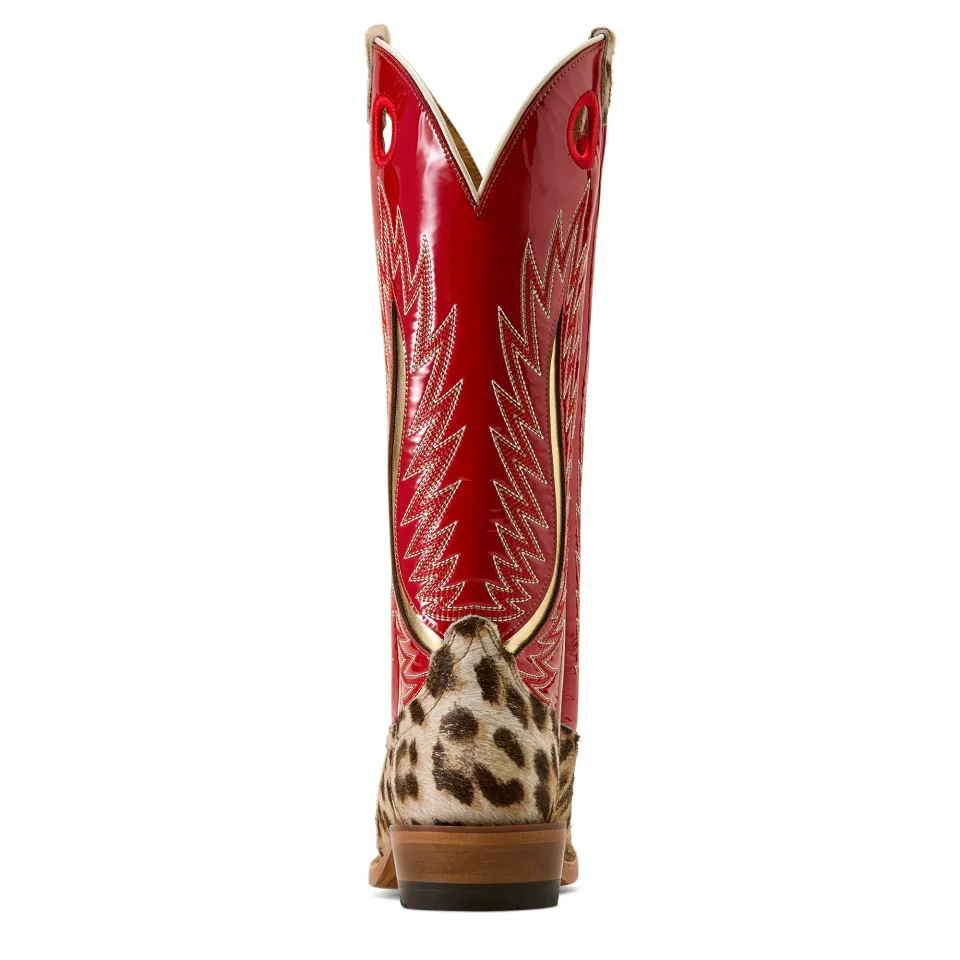 Dieser auffällige Westernboot verbindet klassischen Cowboy‑Charme mit modernem Komfort: das markante Hair‑on‑Hide‑Fussteil mit Leoparden‑Optik setzt ein starkes Fashion‑Statement, während der hohe, aufwendig bestickte Schaft in kontrastreichem Rot mit Cut‑Out‑Details und großen Zuglöchern für einen selbstbewussten Look sorgt. Die schmale Cutter‑Zehenform verleiht dem Schuh eine elegante Silhouette, der Futurity‑Absatz sorgt zugleich für den typischen Western‑Stil. Komfortfunktionen wie ATS®‑Technologie, TekStep™‑Polsterung und die herausnehmbare All Day Cushioning‑Einlegesohle machen den Boot alltagstauglich – ideal für lange Tage, Festivals oder als stilbewusste Ergänzung zu Casual‑ und Country‑Outfits. Hochwertige Verarbeitung und eine pflanzlich gegerbte Ledersohle garantieren Langlebigkeit und einen authentischen Westerncharakter.