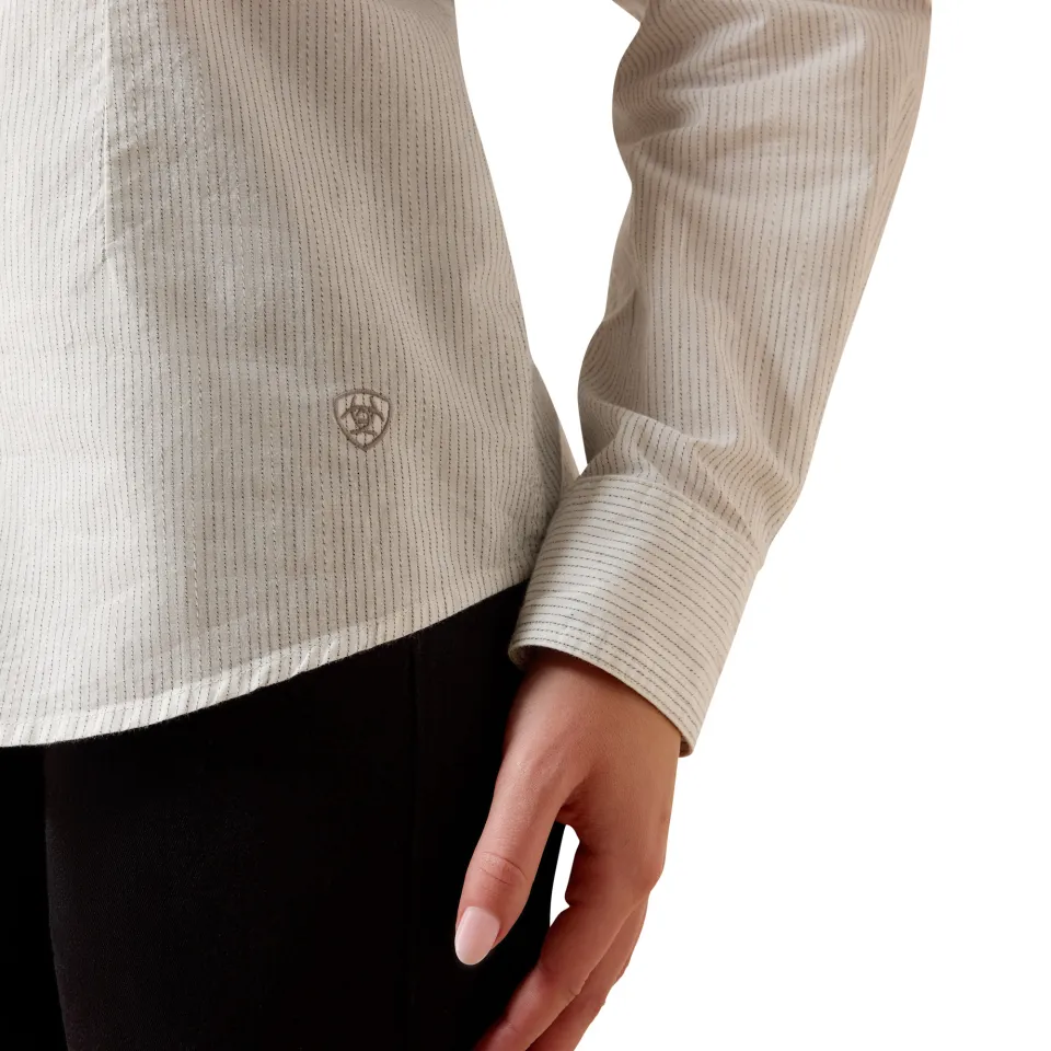 Das ARIAT Stella Western Snap Shirt in der Farbe ROPE STRIPE ist ein unverzichtbares Basic für jede Cowgirl-Garderobe. Mit seinem klassischen Western-Design verbindet dieses Hemd authentischen Stil mit modernem Komfort. Das Shirt ist mit eleganten Perlenknöpfen versehen, die ihm einen typischen Western-Look verleihen, und verfügt über charakteristische Yoke-Details sowie Brusttaschen, die dem Kleidungsstück einen zusätzlichen Hauch von Originalität schenken. Ob beim Ausritt, in der Freizeit oder beim Stadtbummel – dieses vielseitige Hemd sieht immer stilvoll aus, egal ob es elegant kombiniert oder lässig getragen wird.